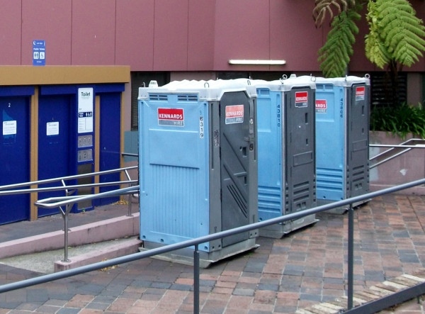 14 October 2013: Note the out of order signs on the dark blue doors of the toilets and the row of portaloos sitting in front of the toilets.