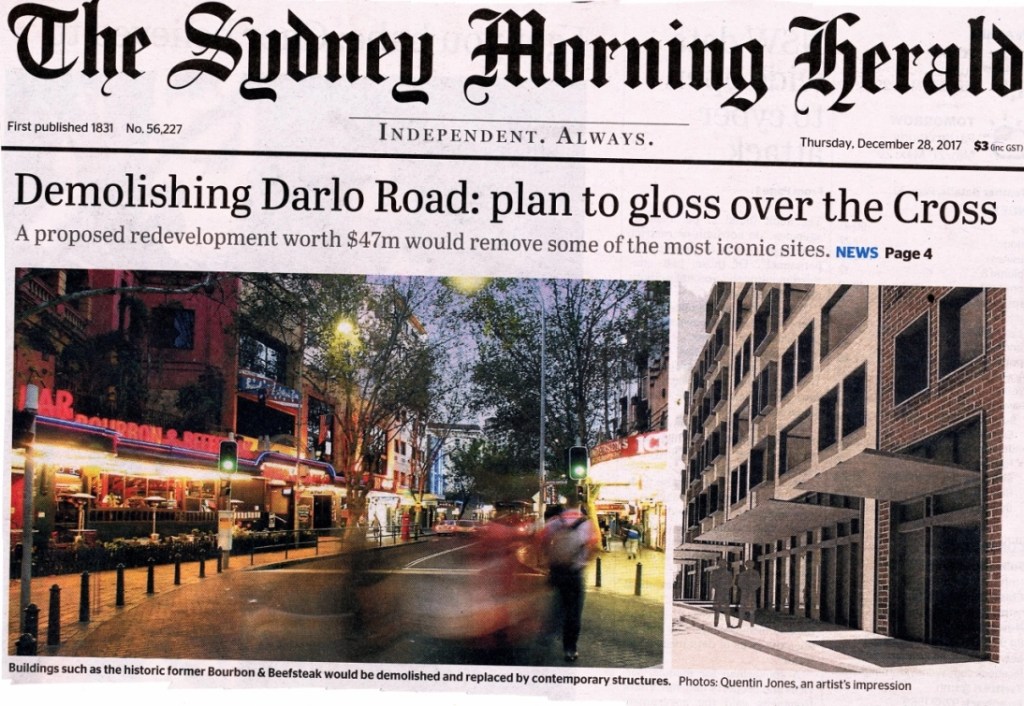 Kings Cross has been rapidly gentrified over the last few years by greedy developers with no association or connection with this historic precinct. It has long been Sydney’s bohemian area and a haven for creative and/or anyone escaping the conformity and drudgery of suburban living. This latest development application if it proceeds will raze an entire historic block including The infamous Bourbon and The Empire hotel, the old Les Girls from the 60’s until the mid 90’s. In its place will rise a generic, architecturally unimaginative block of 83 ‘luxury’ apartments, over 100 car spaces and provision for 2 greatly reduced licenced premises. Please sign to stop this monstrosity being built.